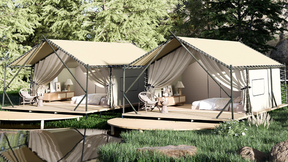 A tenda de glamping modelo Villa é uma verdadeira celebração da vida ao ar livre, projetada para quem busca uma experiência única de proximidade com a natureza sem renunciar ao conforto.
